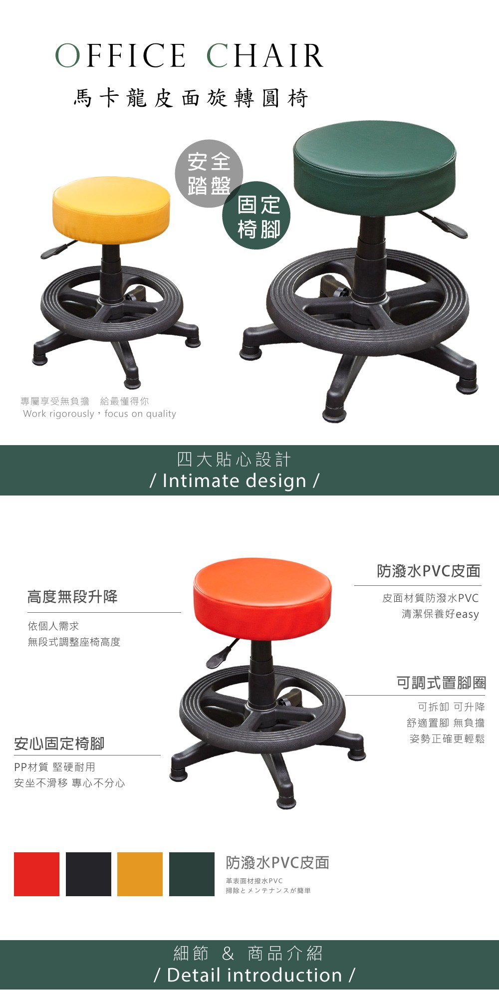 點我下載【A1】馬卡龍皮面圓型固定式舒適旋轉電腦椅/美容椅-附腳圈(箱裝出貨)1入黑色