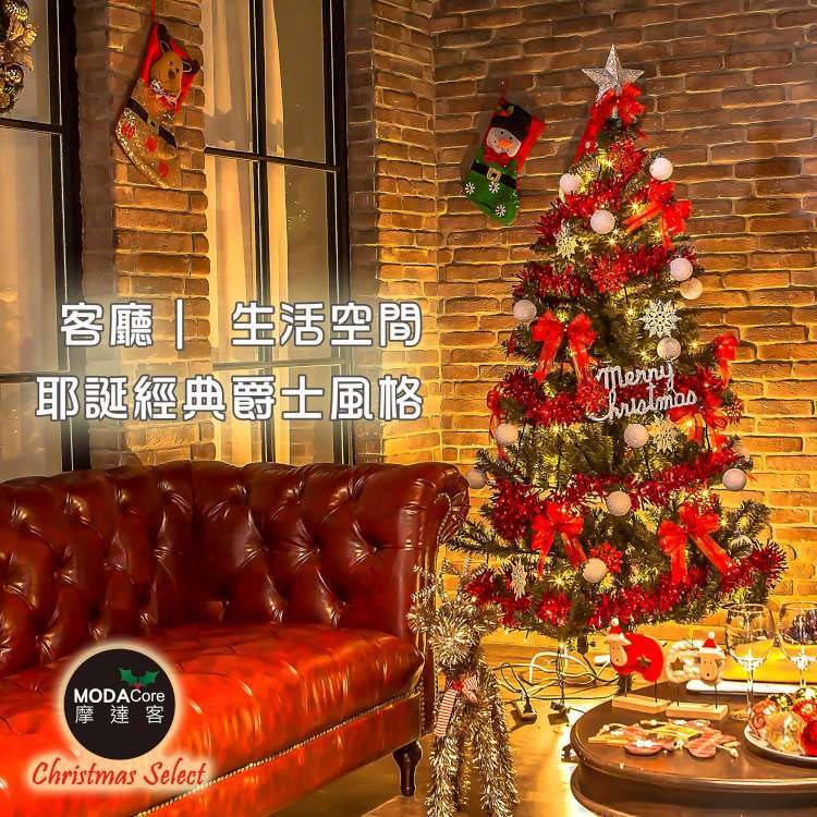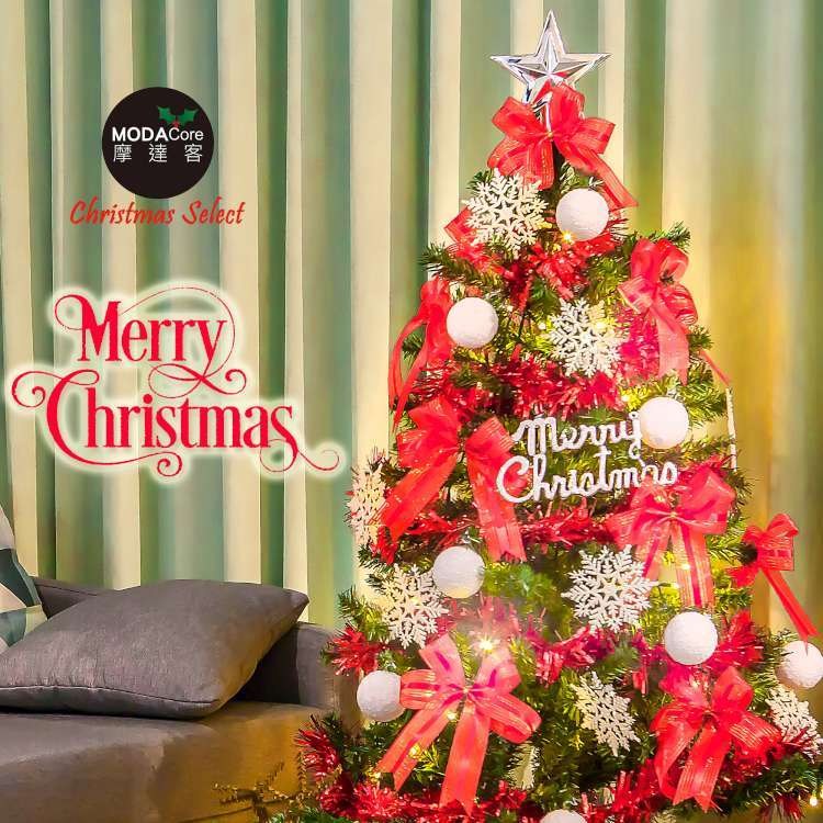 摩達客 5尺特仕幸福型綠色聖誕樹超值組 含全套飾品+100燈LED燈1串 A. 金色年華色系