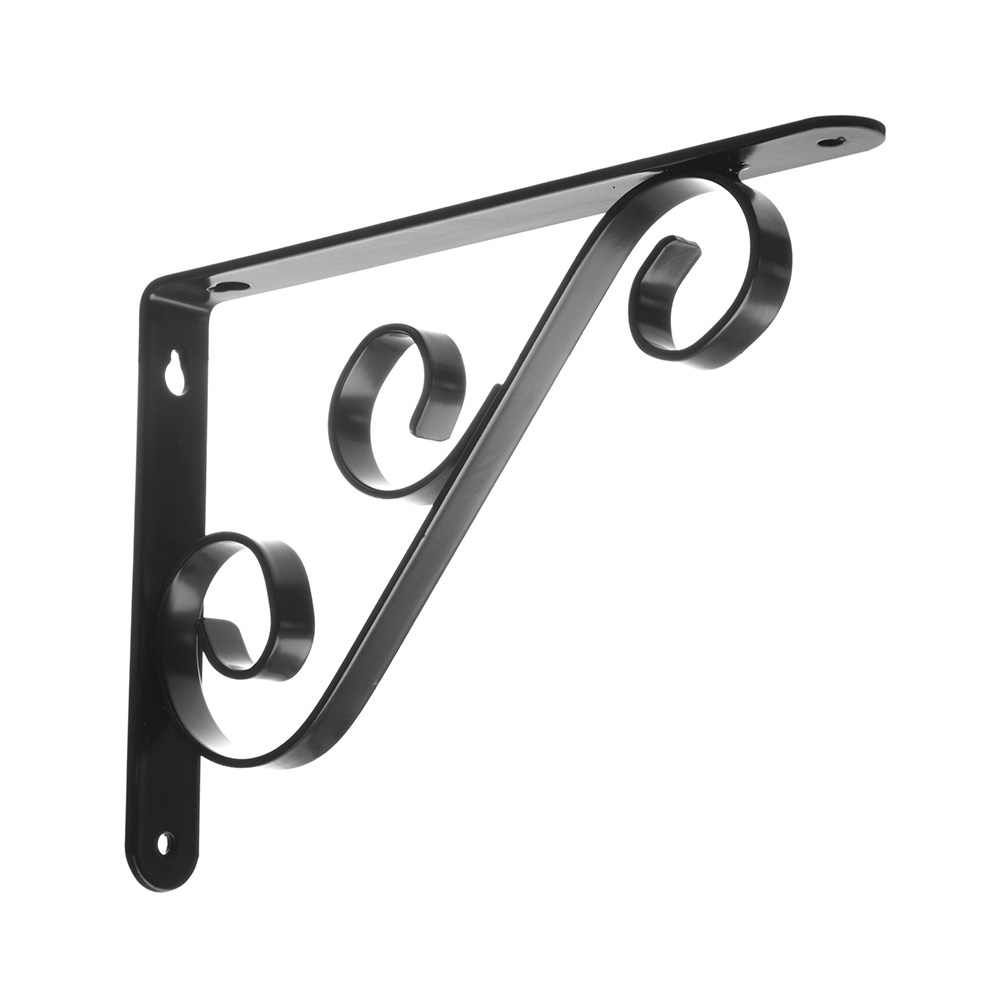 居家收納及擺設,您可以選擇使用這款【裝飾系列-板托.6.5"*9", 黑色 _適用層板(深25公分)】,是採用金屬製造,堅固耐用之外,亦使用了黑色金屬色澤,極簡時尚,渦卷式的設計看起來格外華麗雅緻,支架細緻輕盈,不佔空間,搭配板托的固定桿可以調節上下的高度,使用上相當靈活有彈性,更可荷重達約17kg以內,DIY的組裝方式,更是添增您佈置的樂趣,是您購買擱板不可或缺的配件喔。