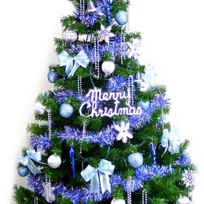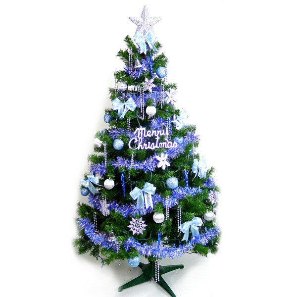 摩達客耶誕-台灣製5呎/5尺(150cm)豪華版晶透藍系聖誕樹(銀藍系配件組)+100燈LED燈藍白光2串(附IC控制器)本島免運費