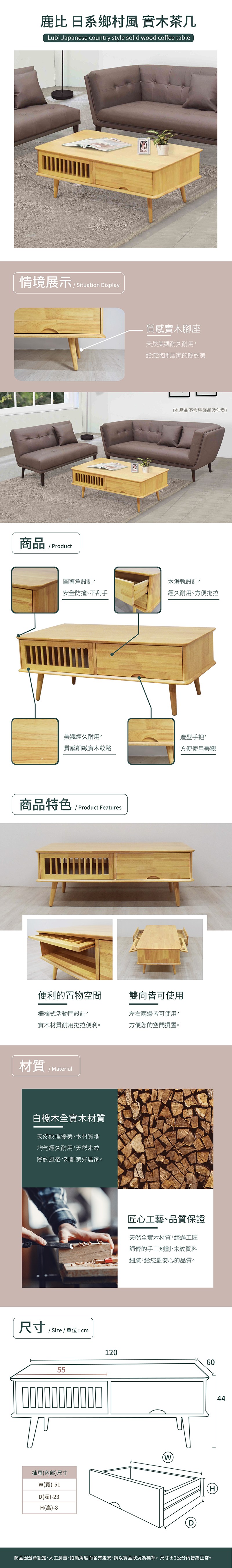 MUNA家居 3125型灰橡功能大茶几 121X60X46cm