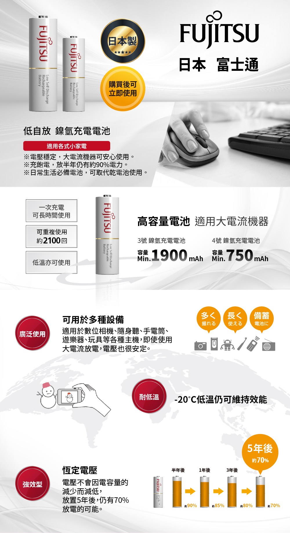 更多【Fujitsu 富士通 品牌電池系列】可供選購搭配,讓居家電子/電器使用更加完善便利 ~