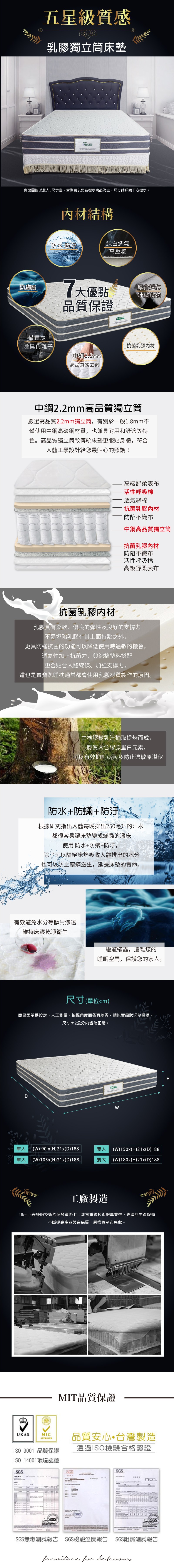 直人木業-CF018標準雙人-直人銀離子抗菌長纖獨立筒乳膠機能5尺床墊