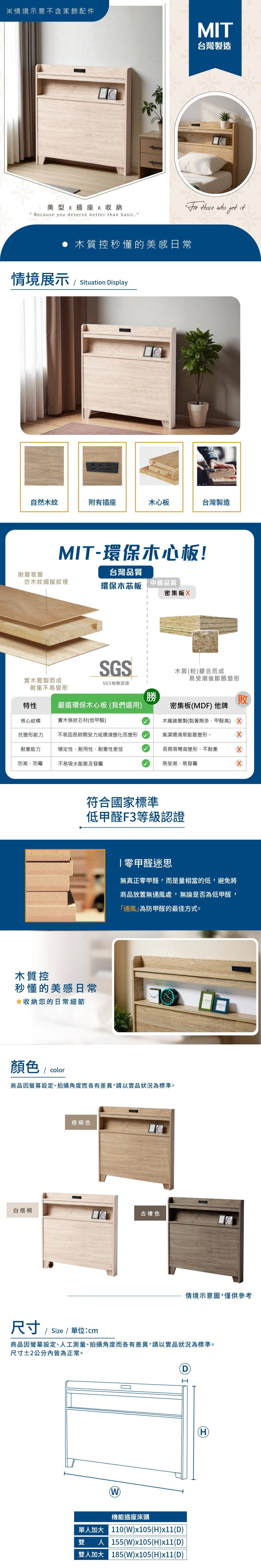 【顛覆設計】諾兒插座書架床頭箱(單大3.5尺)古橡色