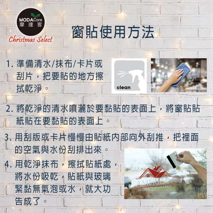 聖誕節櫥窗玻璃靜電貼套組-雪白聖誕花圈