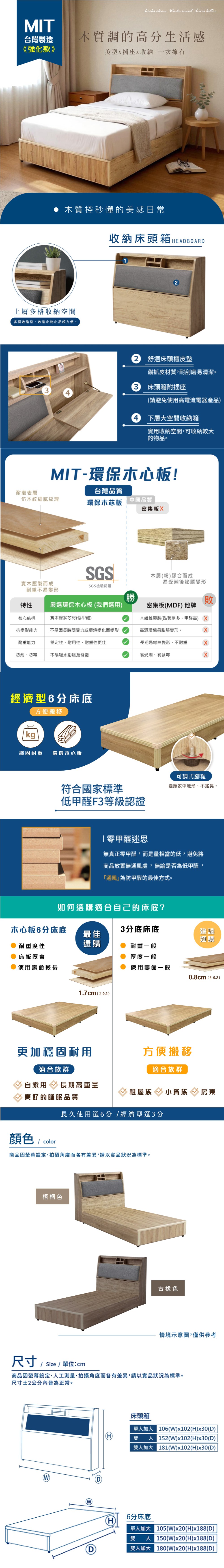 傢俱工場-吉米 MIT木心板床組 (插座床箱+強化底)-雙大6尺古橡