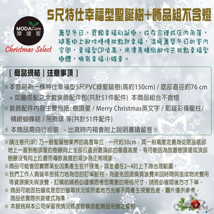 摩達客耶誕-台灣製5呎/5尺(150cm)豪華版氣質霧金系聖誕樹(金色系配件組)+100燈LED燈暖白光2串(附IC控制器)本島免運費