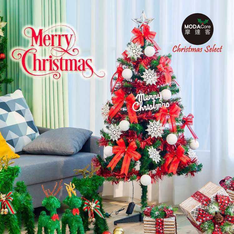摩達客台灣製8尺(240cm)豪華型裝飾綠色聖誕樹/全套飾品組(兩色可選)+100燈LED小圓球珍珠燈串(暖白光/USB接頭)*2串/本島免運費