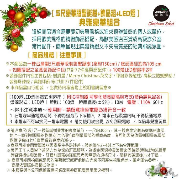 摩達客耶誕-台灣製5呎/5尺(150cm)豪華版氣質霧金系裝飾聖誕樹(金色系配件組)(不含燈)本島免運費
