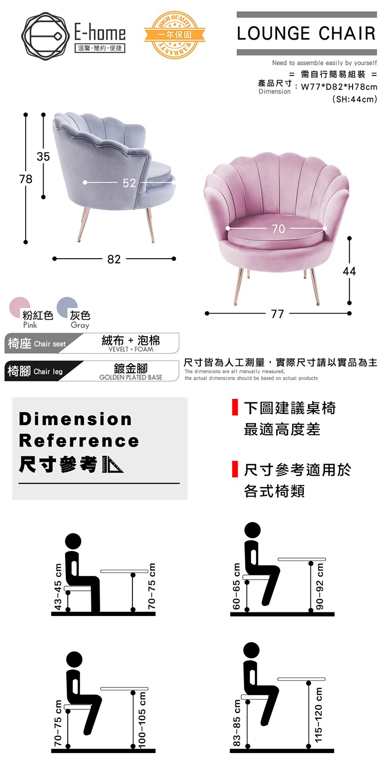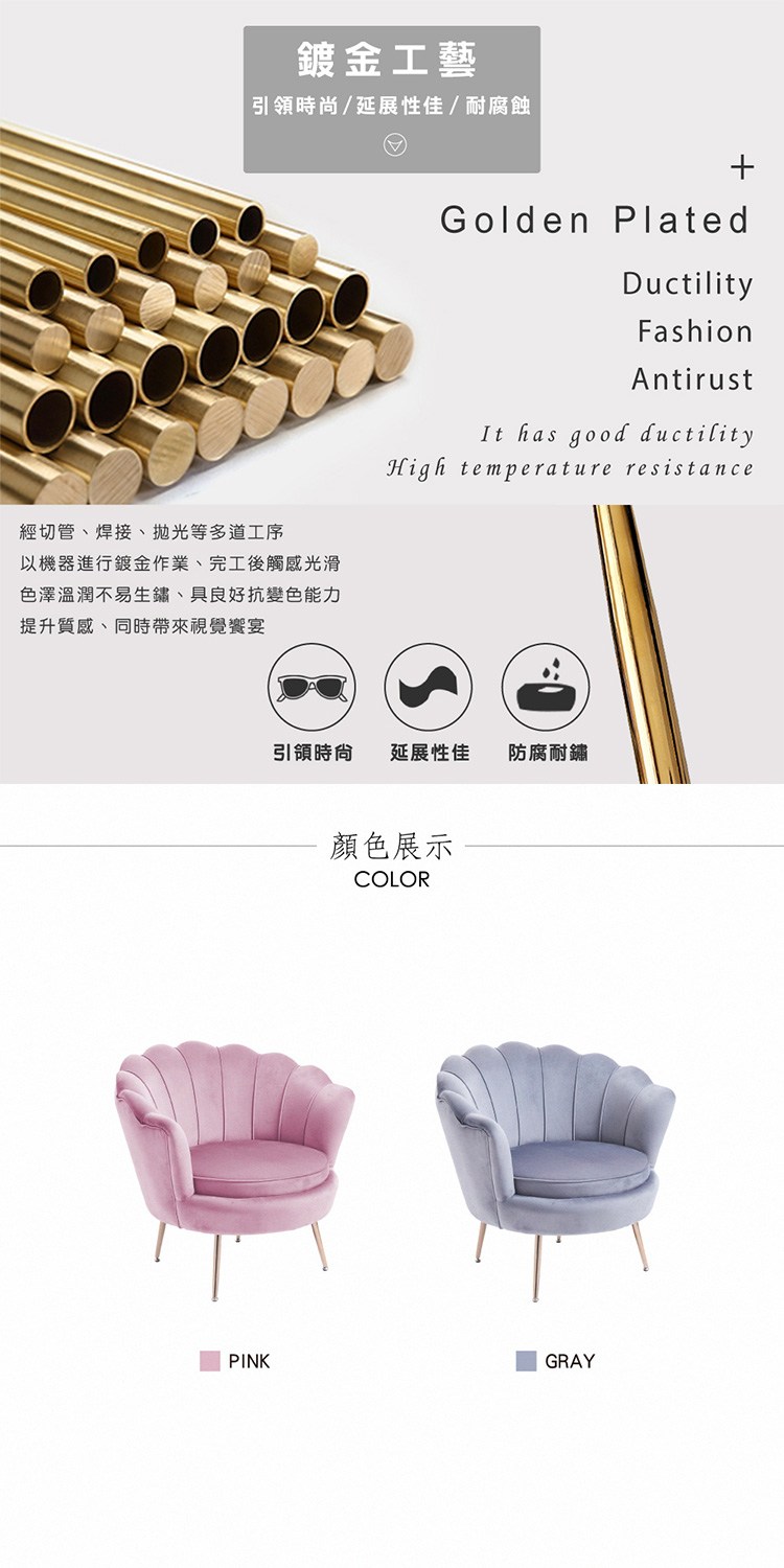 * 金屬鍍金椅腳,美觀穩固又耐用