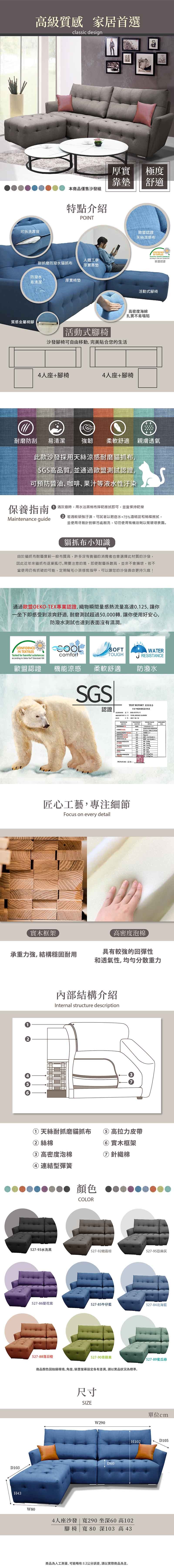 AS雅司-莉可L型沙發(另可訂做四色)(整組)