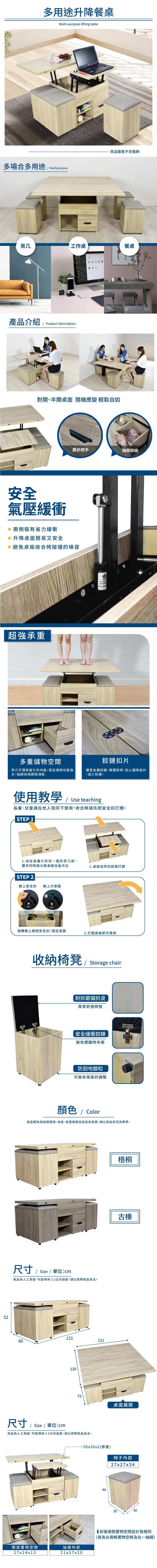 IHouse-巧匠 緩衝機能升降茶几/餐桌(附四椅)古橡