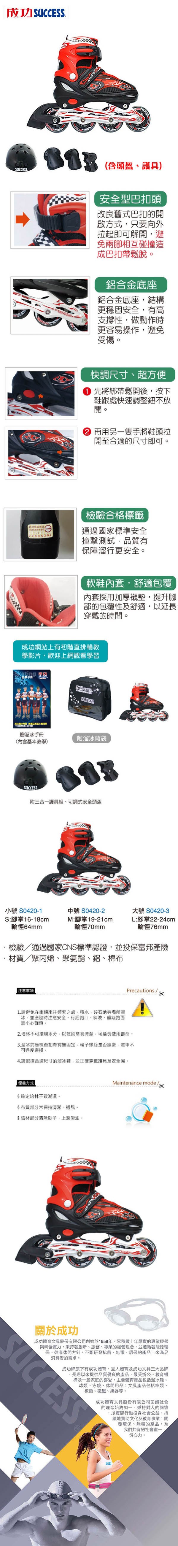成功 休閒教學用 鋁合金伸縮直排輪 S0420(含頭盔、護具)S:16-18CM