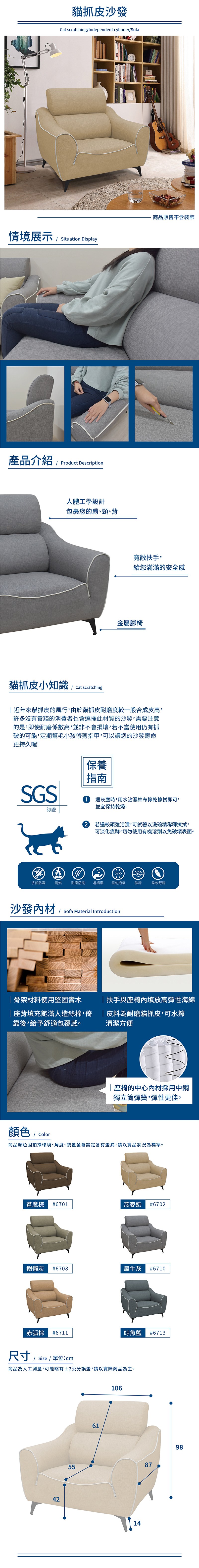 【本木】安格斯 舒適護腰耐磨貓抓皮1人坐沙發奶霜白#65