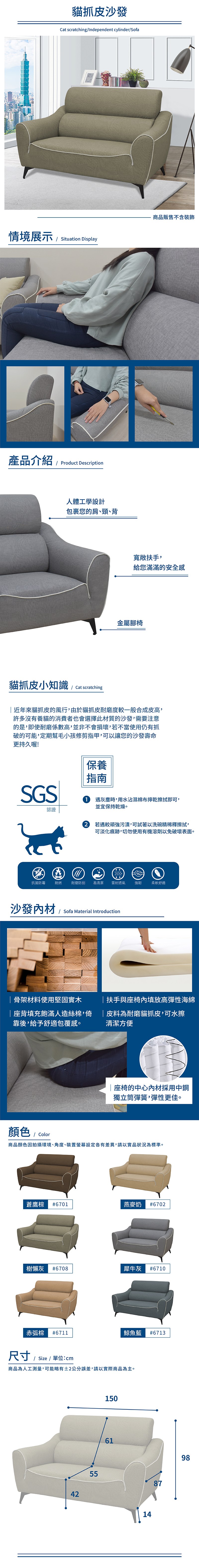 本木家具-安格斯 舒適護腰耐磨貓抓皮2人坐沙發