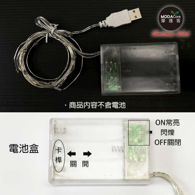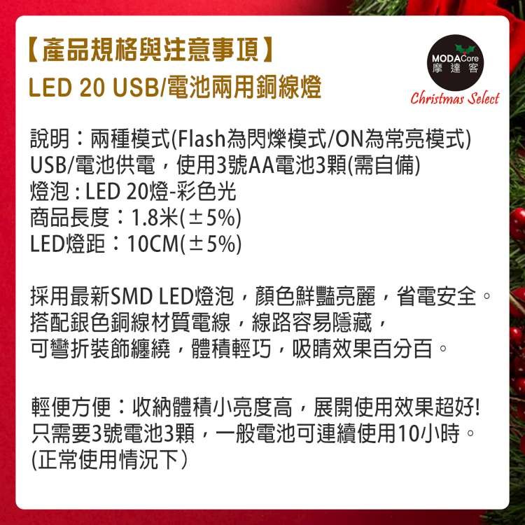 點我下載摩達客 20燈LED銅線燈串彩色光-USB電池盒兩用充電-浪漫星星燈聖誕燈串