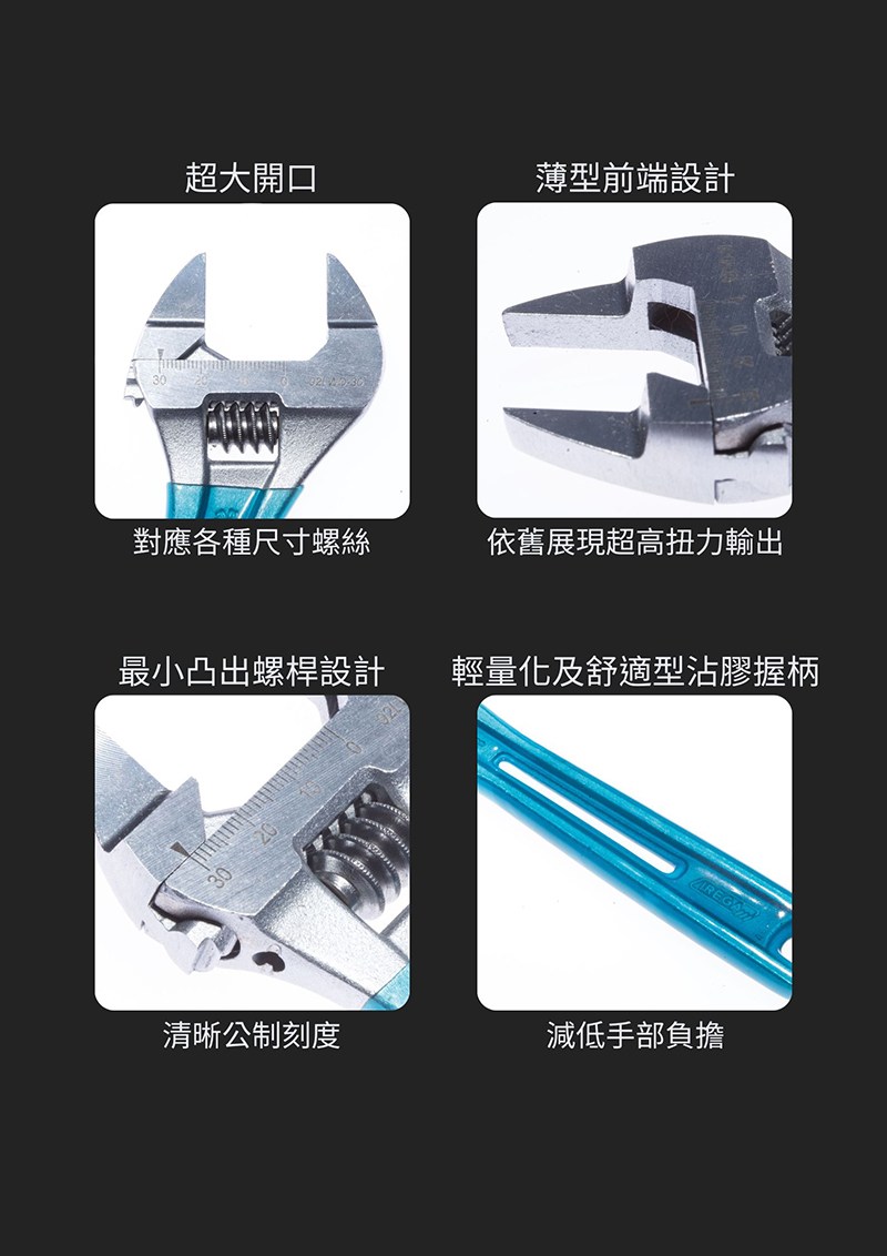Panrico百利世12吋超薄特大開口活動扳手 刻度扳手 可調式扳手 活口扳手 活扳手 活絡扳手 調節扳手 _廠商直送