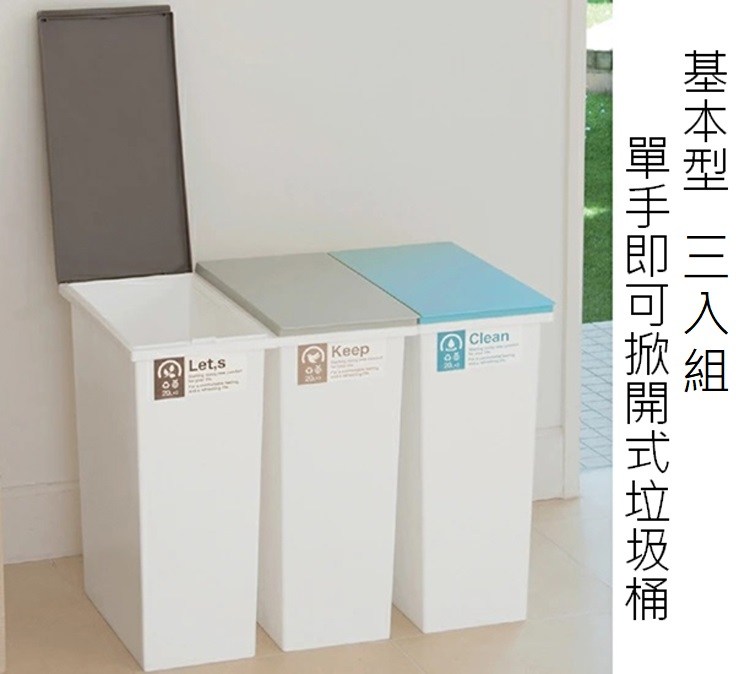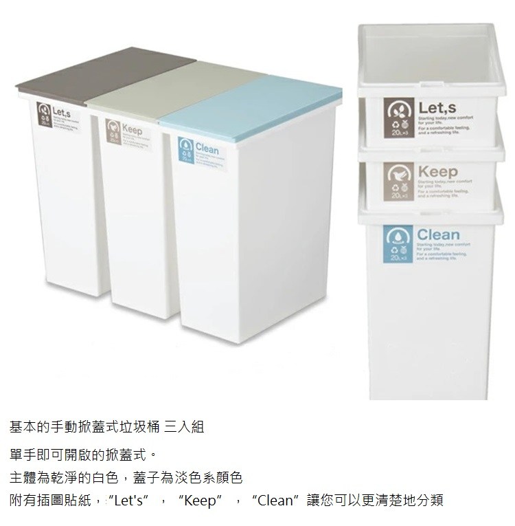 【日本 TONBO】NEO系列 三入組 掀蓋式分類垃圾桶