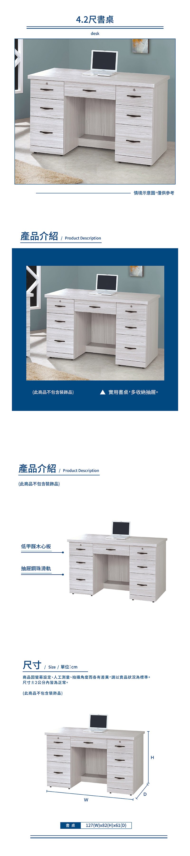 ASSARI-夏雪4.1尺書桌(寬123x深60x高83cm)