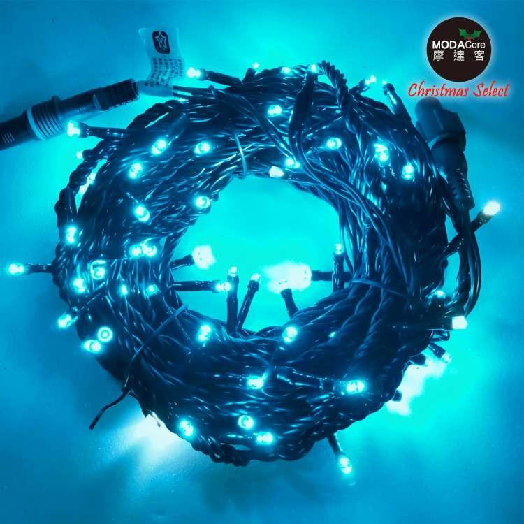 摩達客 100燈LED燈串聖誕燈 (藍白光黑線)(附控制器跳機)