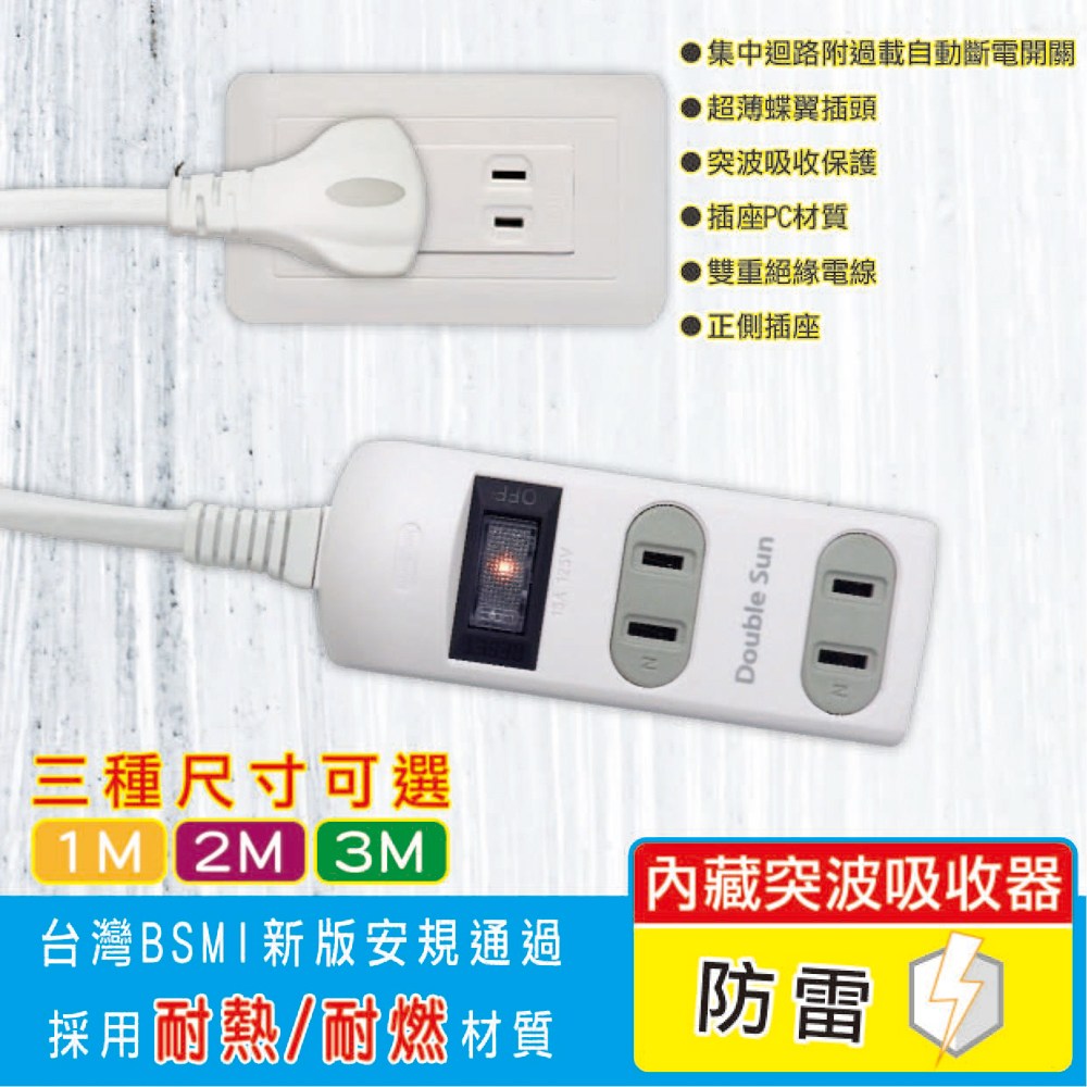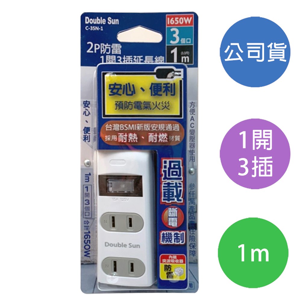 【雙日】1m(3.3尺) 2P防雷1開3插 延長線 C-35-N-1