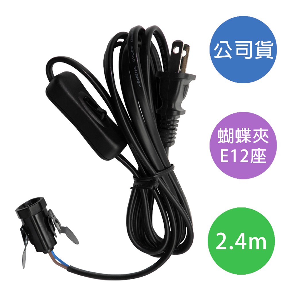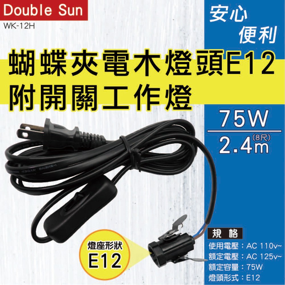 【雙日】 2.4m(8尺)蝴蝶夾 電木燈頭E12附開關 WK-12H