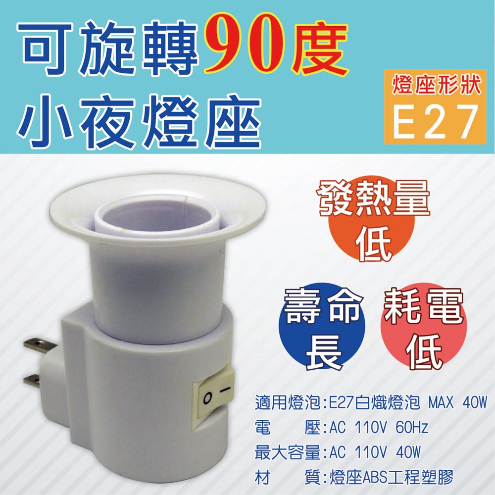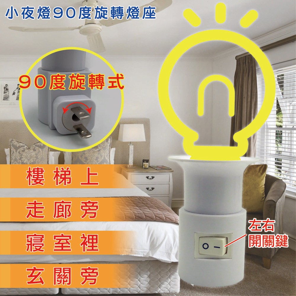 【唯力電業】2入組 90度旋轉 小夜燈座 E12燈座KTC-501