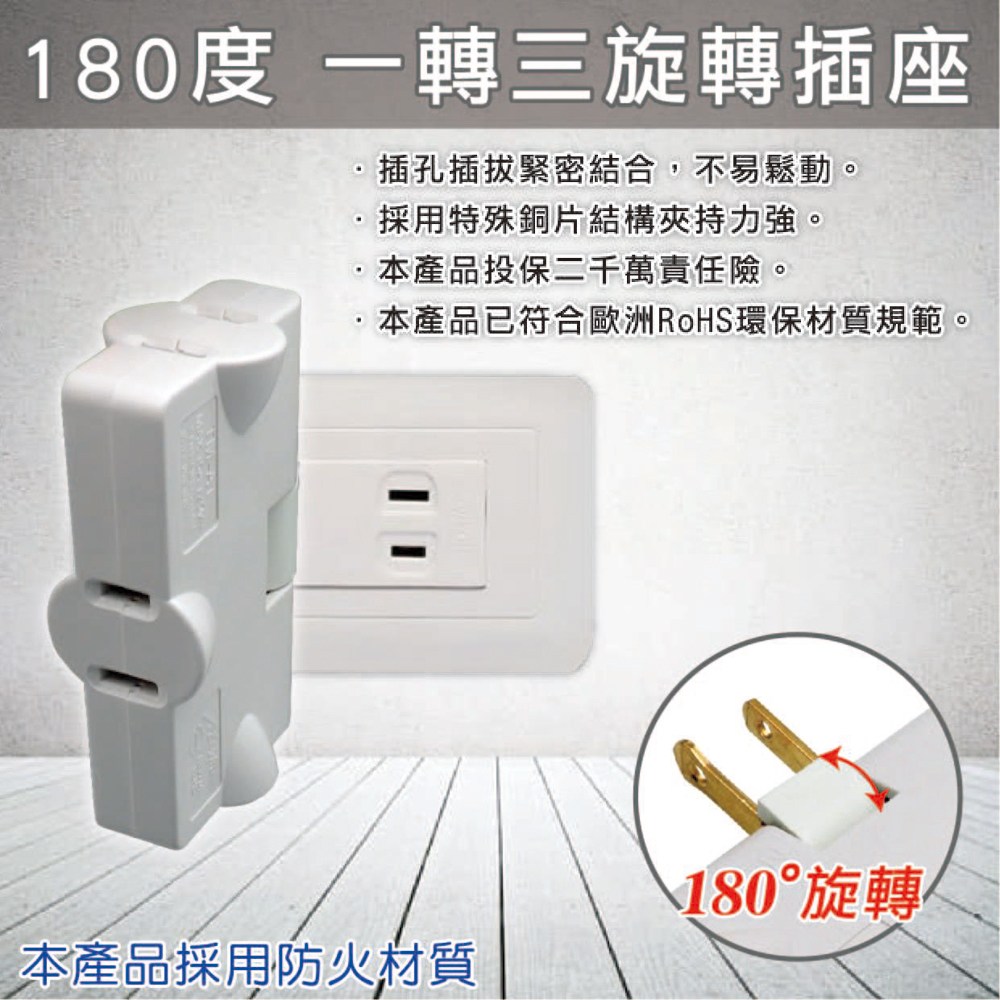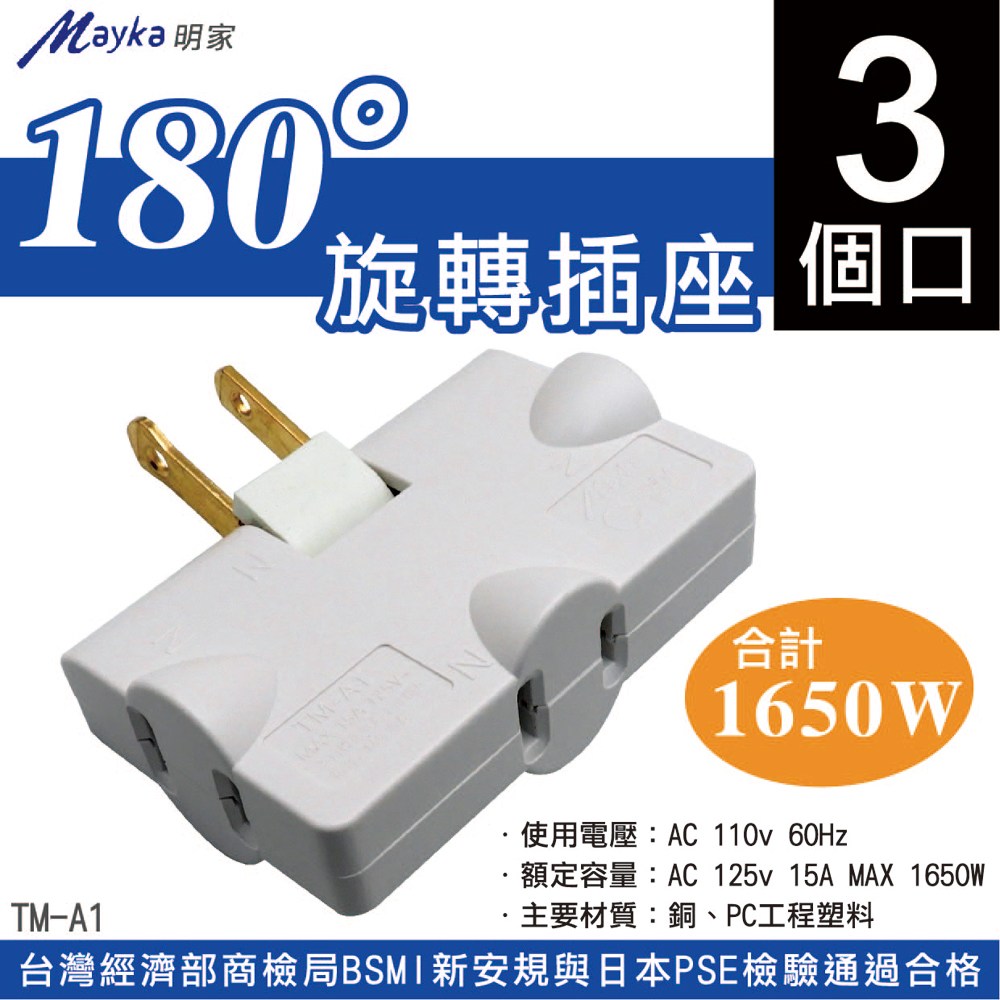 【明家Mayka】TM-A1轉向2孔180度 旋轉插座 三面插 (新安規 轉接器 擴充插座 防火 耐高溫)