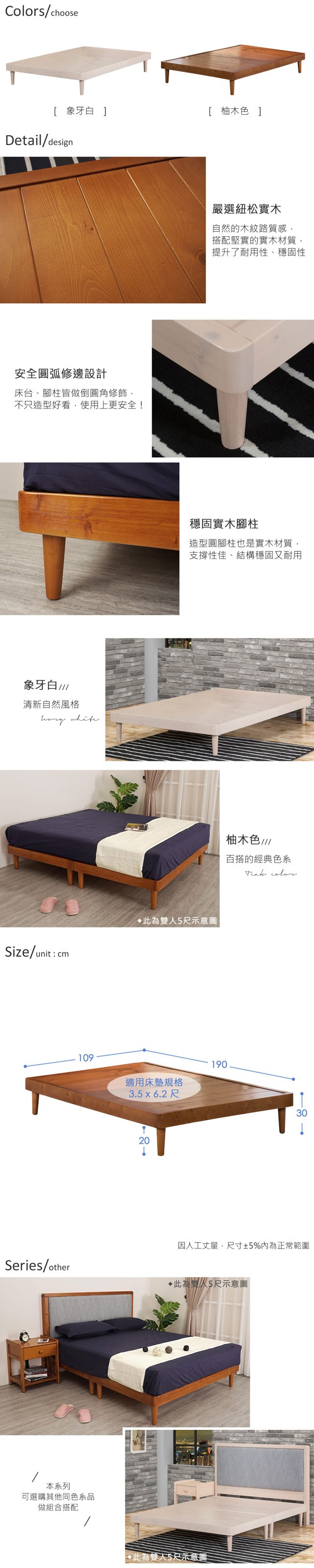 Homelike 喜家居單人3.5尺實木床底(2色可選)(2029)象牙白