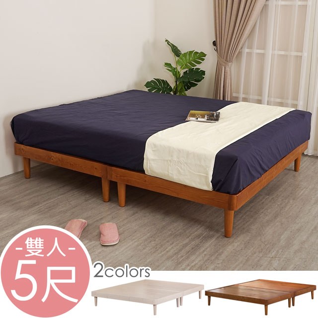IHouse-路易 全實木粗腳穩固 床架/床底 雙大6尺原木色