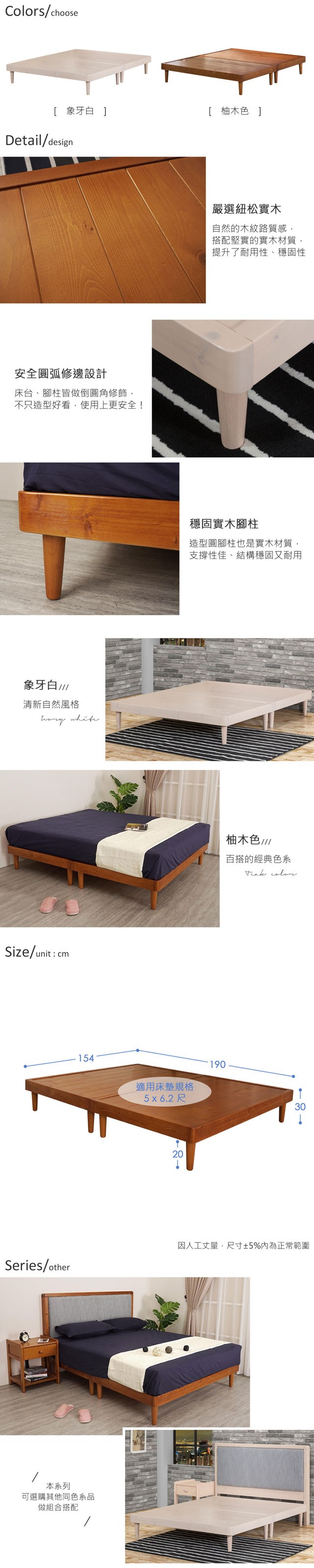 Homelike 喜家居單人3.5尺實木床底(2色可選)(2029)象牙白