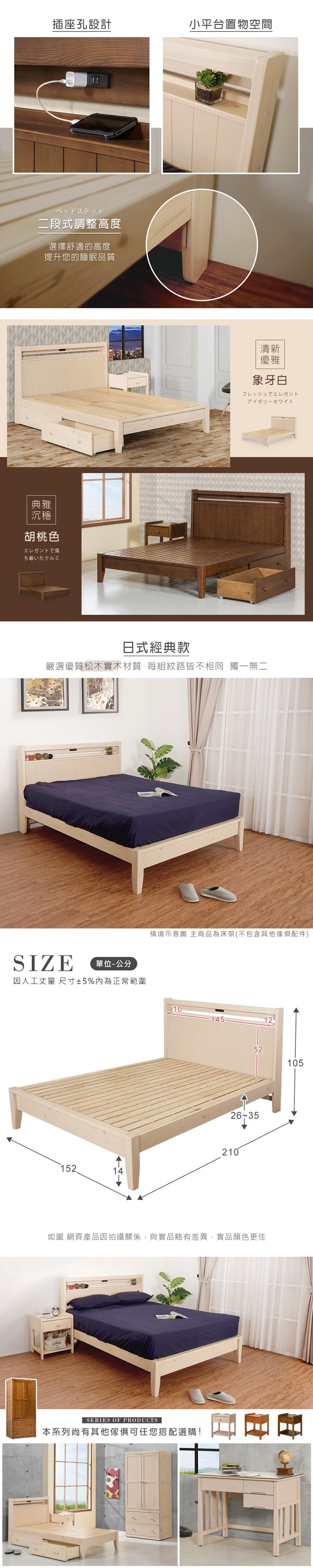 Homelike 喜家居雙人5尺附插座實木抽屜床組(2色可選)(2027)象牙白