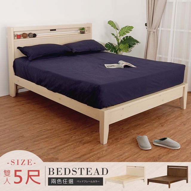 Homelike 喜家居雙人加大6尺附插座床架組(2色可選)(2156)梧桐木