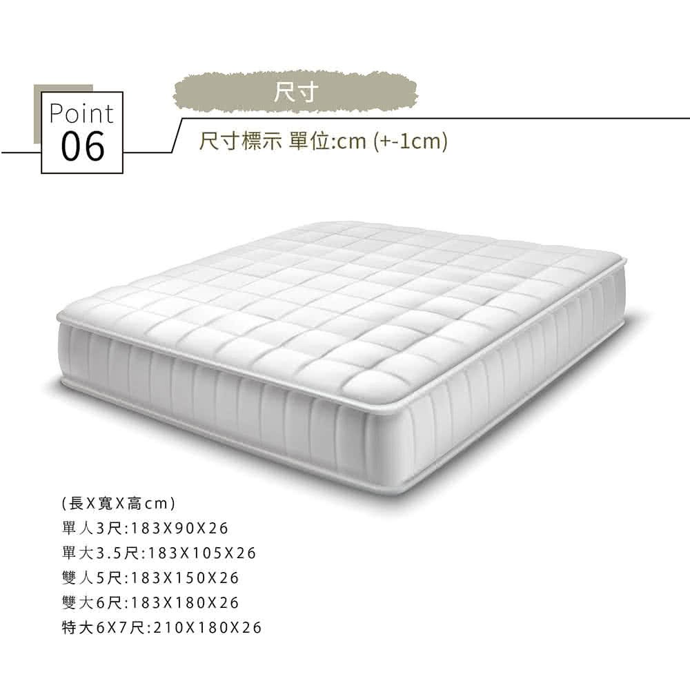 【obis】晶鑽系列_MONET三線五段式乳膠獨立筒無毒床墊雙人加大6*6.2尺