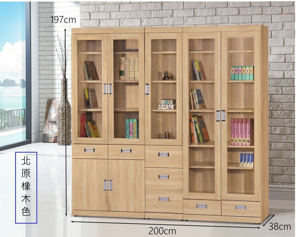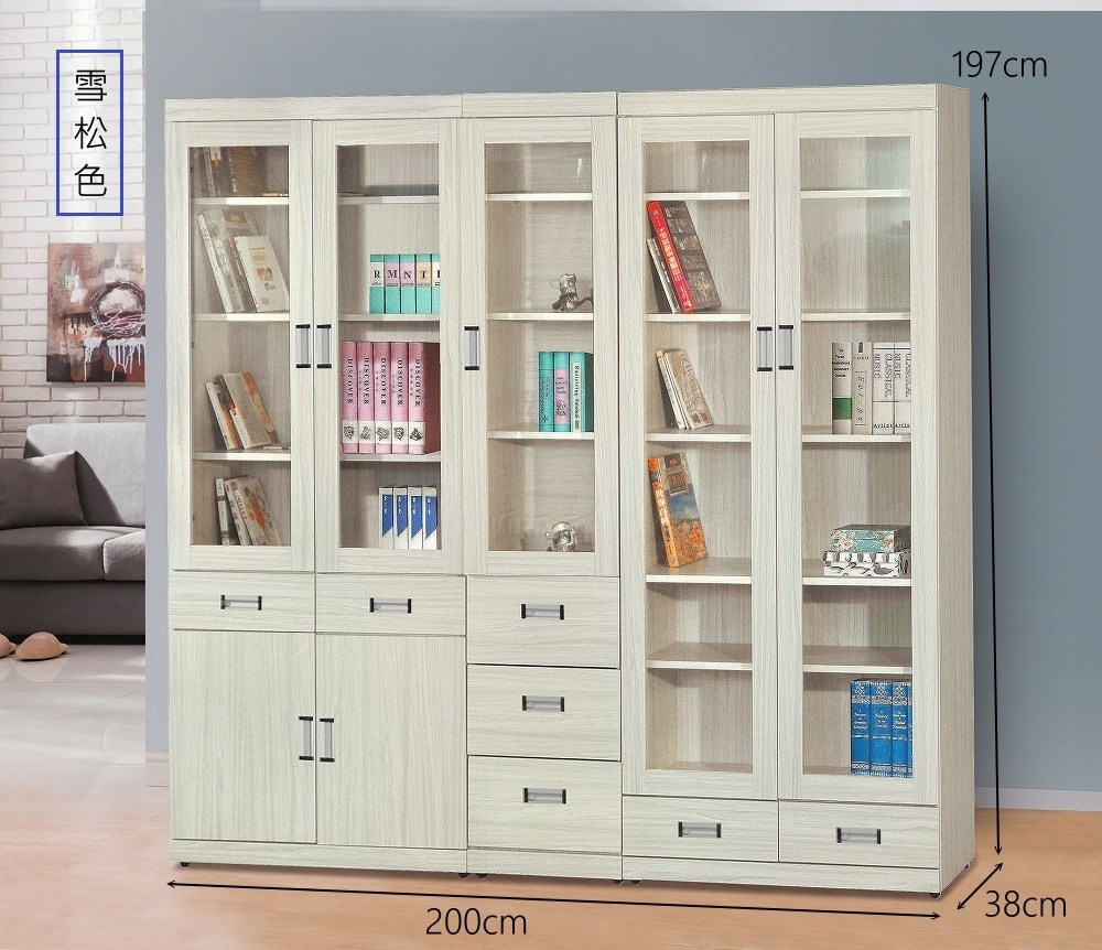寬 200 公分 X 深 38 公分 X 高 197 公分。