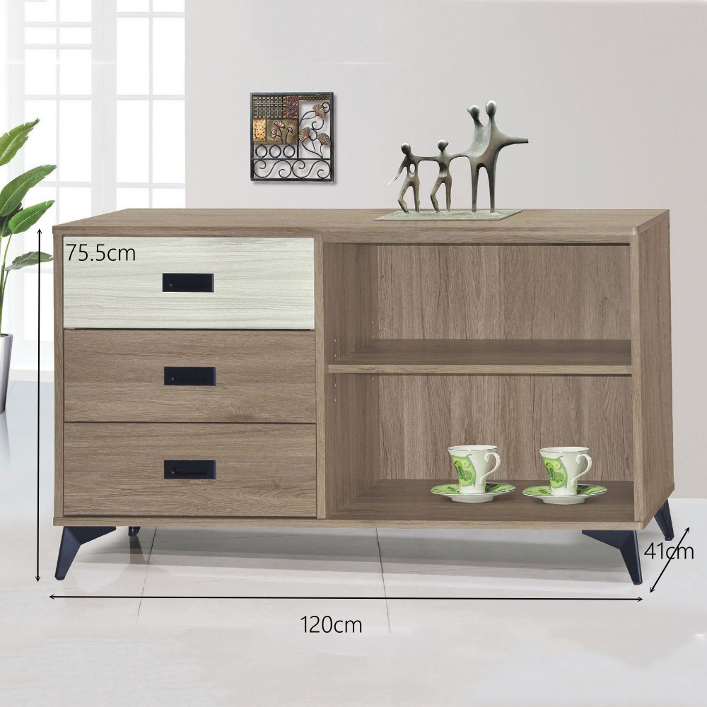 寬 120 公分 X 深 41 公分 X 高 75.5 公分。
