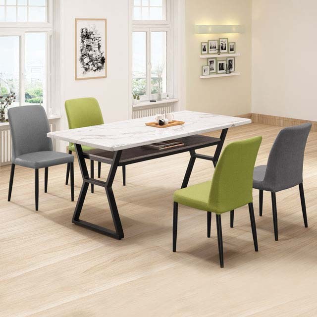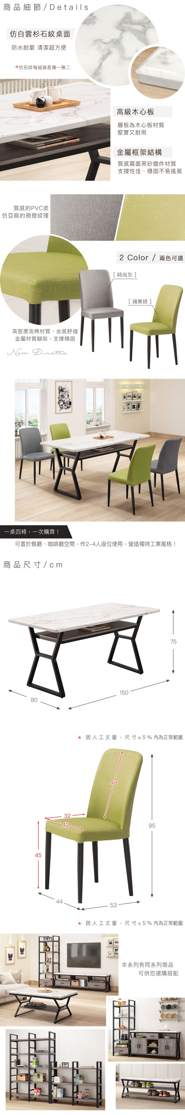Homelike 喜家居仿石紋5尺餐桌椅組(一桌四椅)(2050)四灰椅