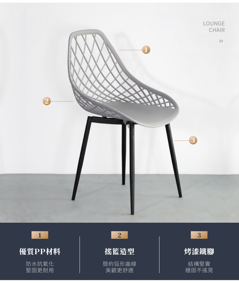 【IDEA】編織鏤空曲線簡約休閒椅/餐椅灰色