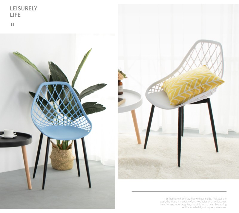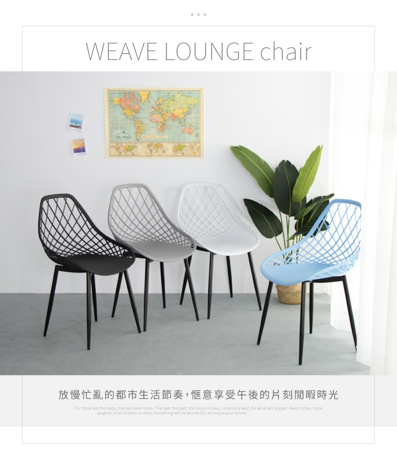 【IDEA】編織鏤空曲線簡約休閒椅/餐椅藍色