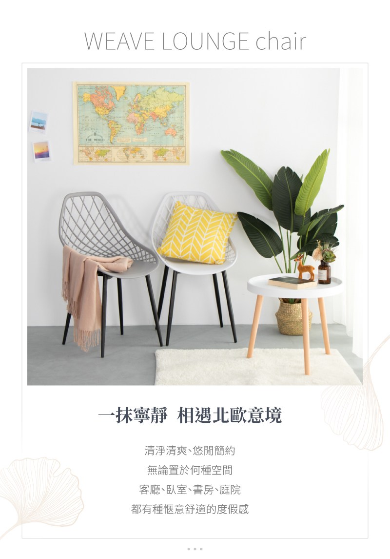 【IDEA】編織鏤空曲線簡約休閒椅/餐椅白色