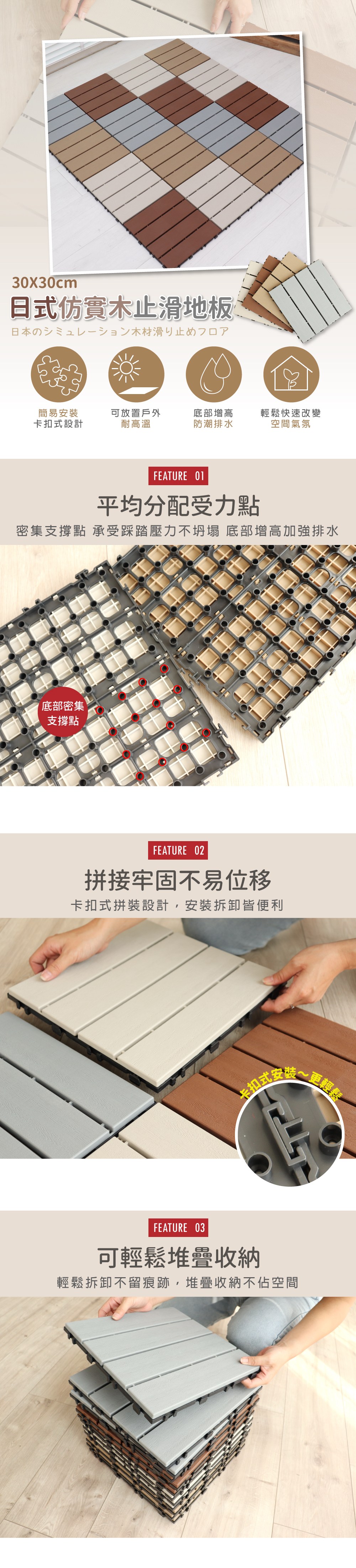 點我下載【AD德瑞森】卡扣式塑木造型防滑板/止滑板/排水板(16片裝)灰色