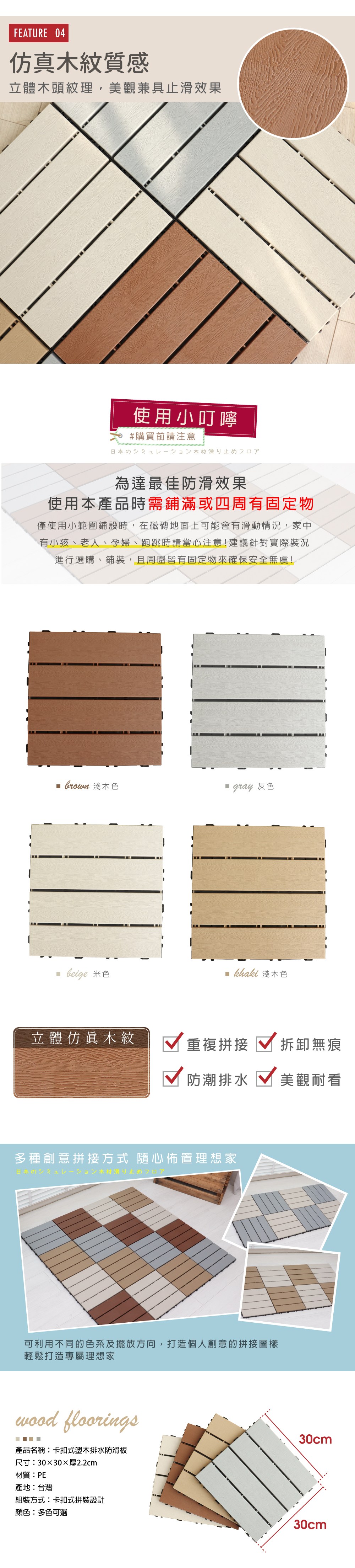 點我下載【AD德瑞森】卡扣式塑木造型防滑板/止滑板/排水板(4片裝)灰色