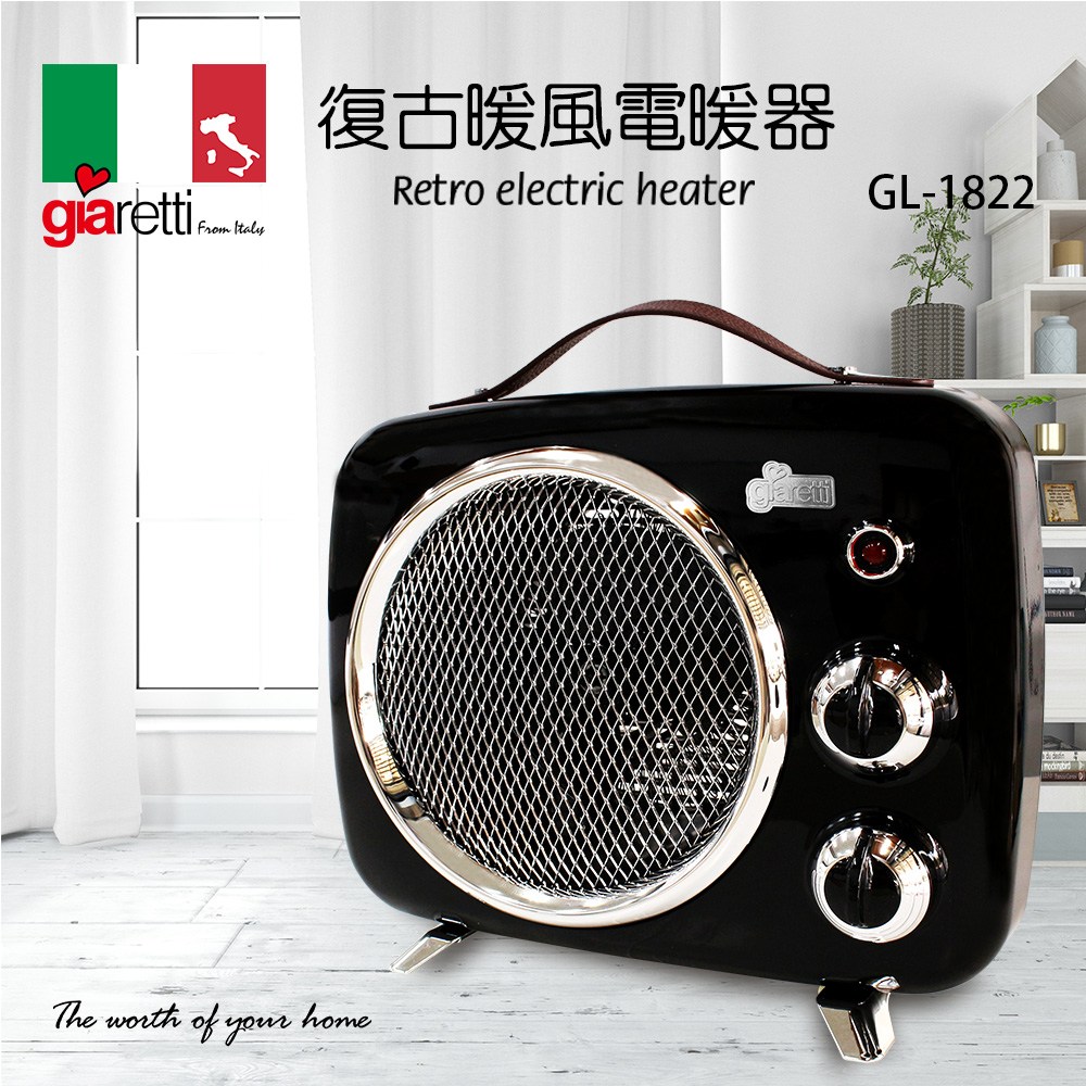 【義大利Giaretti】復古暖風電暖器(GL-1822)黑色