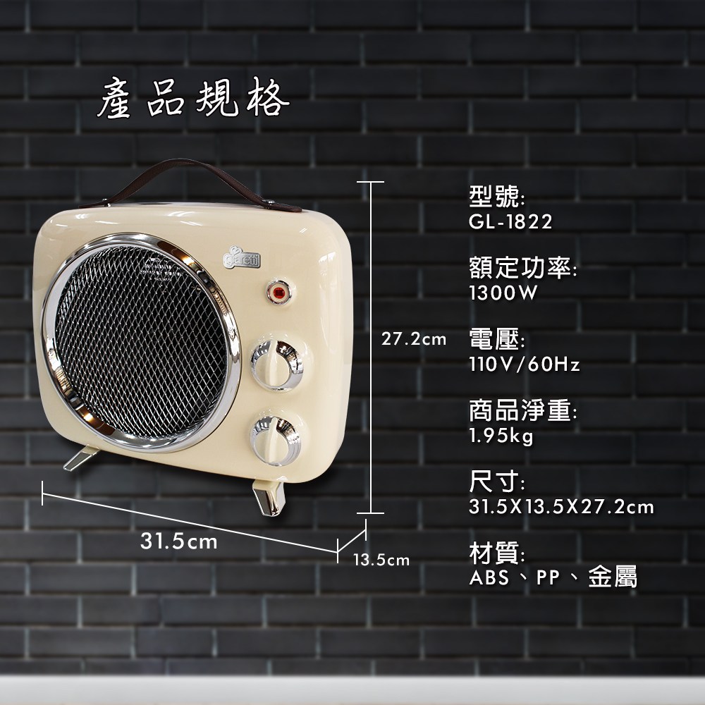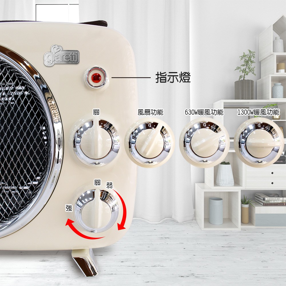 giaretti 珈樂堤 復古暖風電暖器 GL-1822 皮革提手 經典設計 防傾倒安全裝置 白色