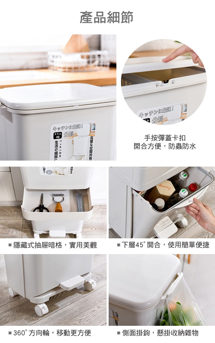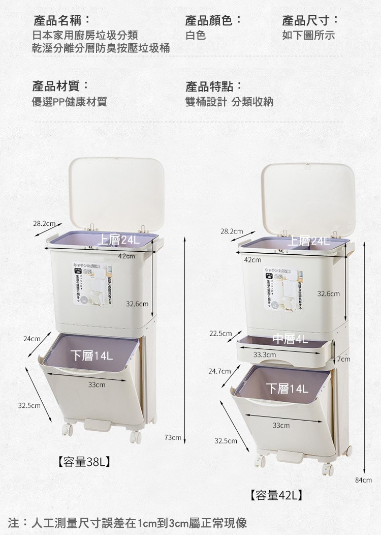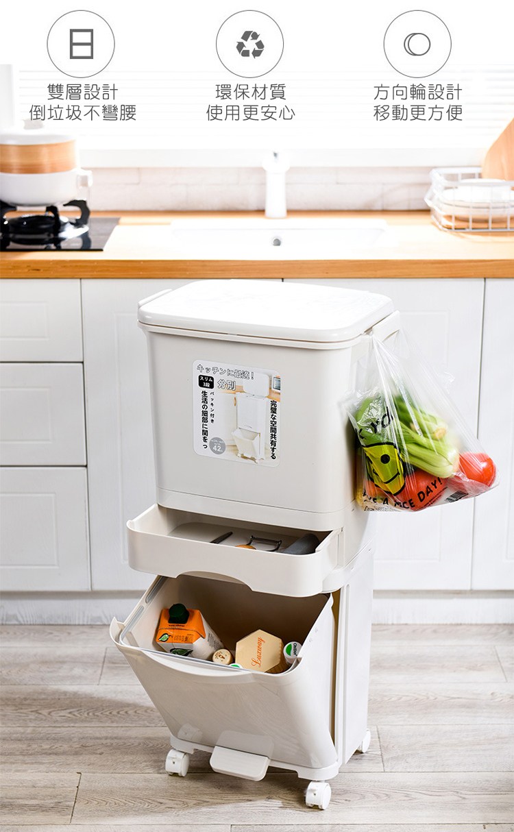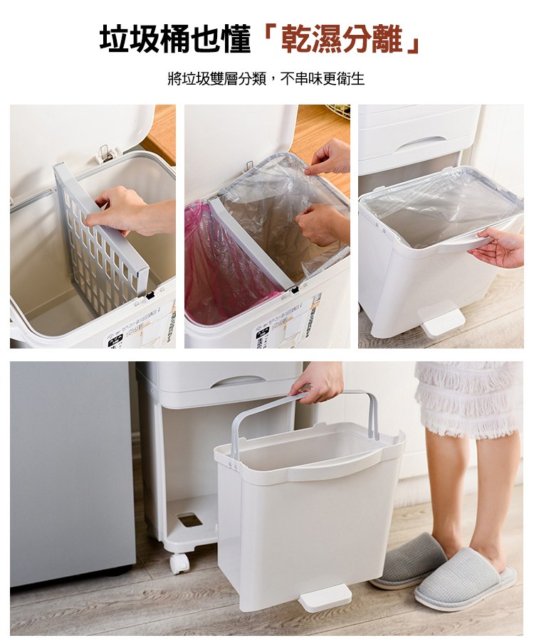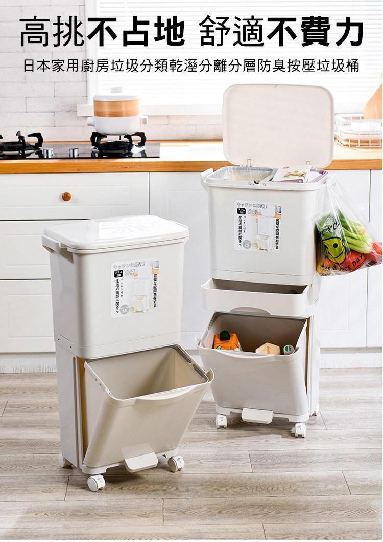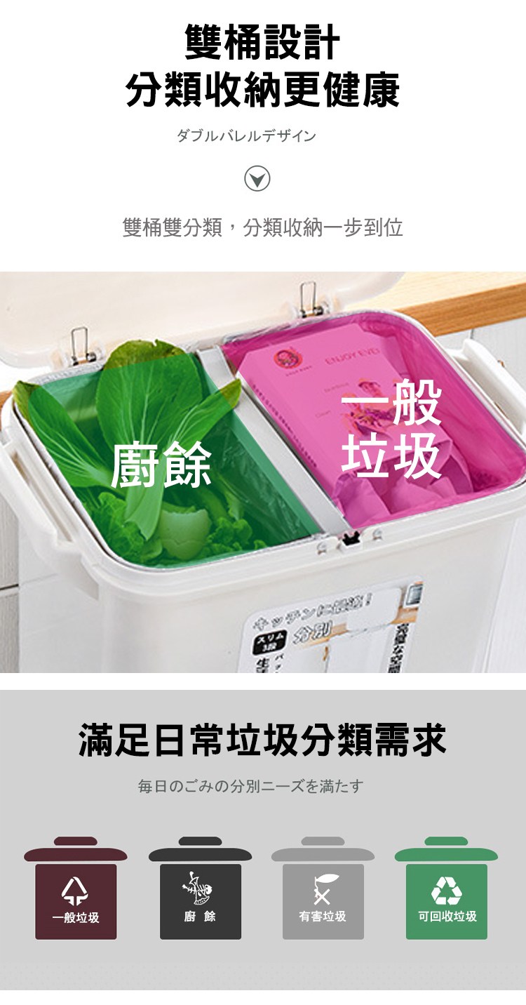 【好物良品】38L_日本家用廚房垃圾乾濕分類分離防臭按壓掀蓋式分層垃圾桶 廚餘桶 回收桶