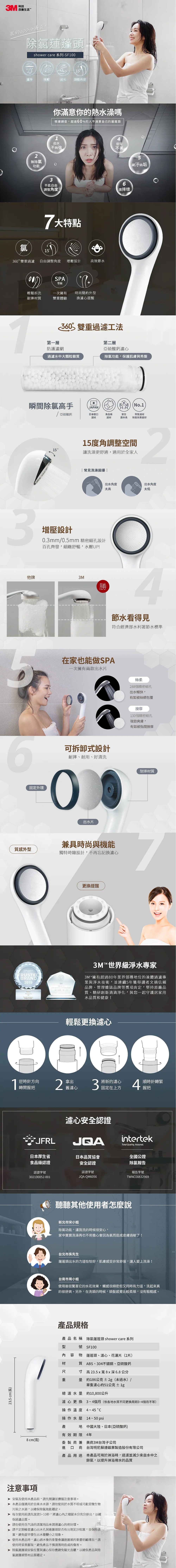 3M Shower Care 除氯蓮蓬頭 內含濾心乙支 型號SF100