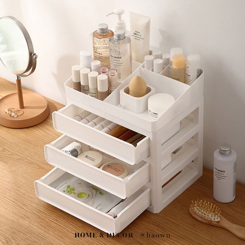 抽屜式化妝品收納盒桌面妝臺首飾口紅盒家用宿舍護膚品整理儲物盒