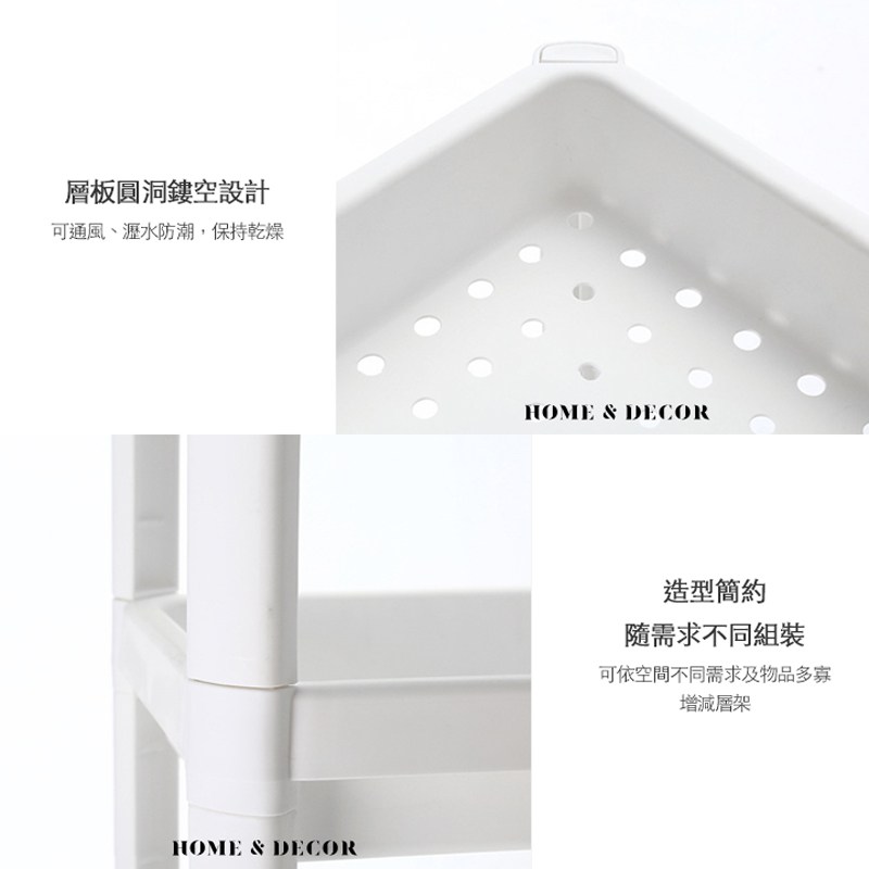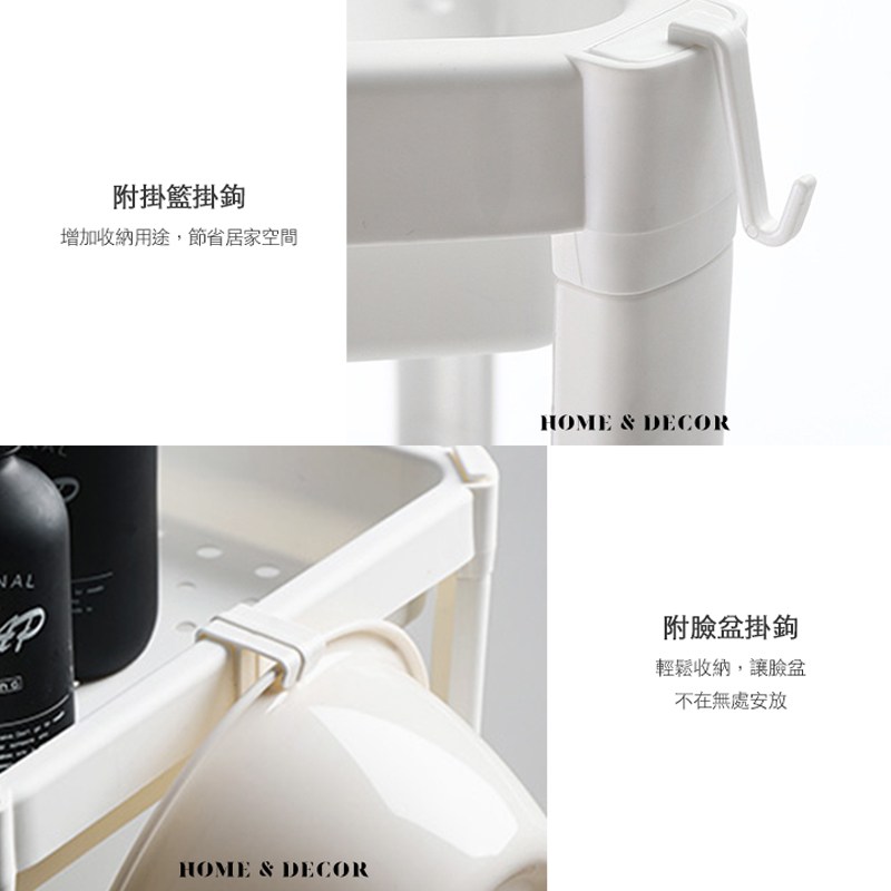 【好物良品】3層_簡約浴室落地角落 收納置物分類架 (附掛鉤) 層架 儲物架-白色