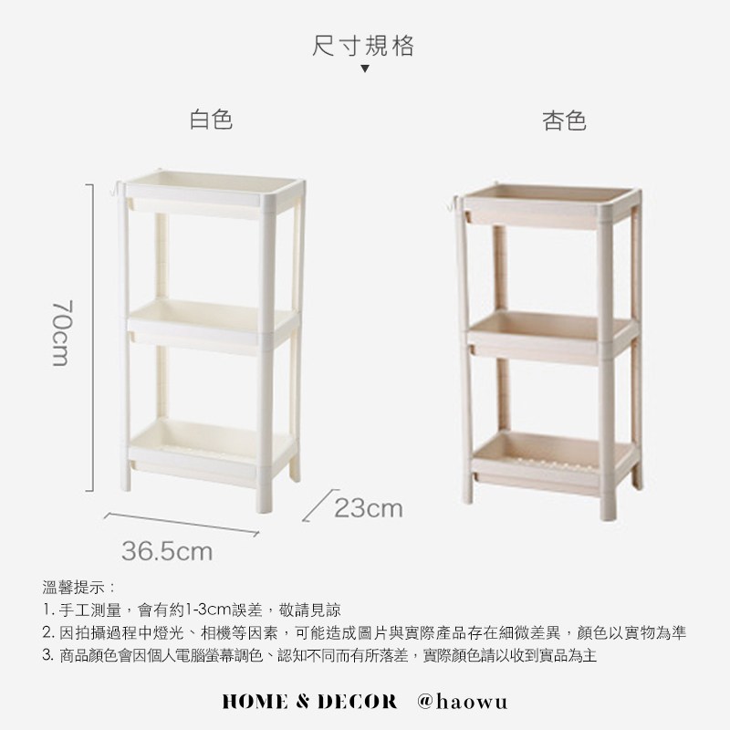 【好物良品】3層_簡約浴室落地角落收納置物分類架 (附掛鉤) 層架 儲物架-杏色