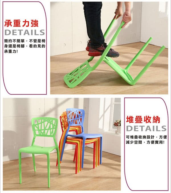 ◆椅背幾何造形鏤空設計富創意,並有開洞做為把手方便挪動與收納